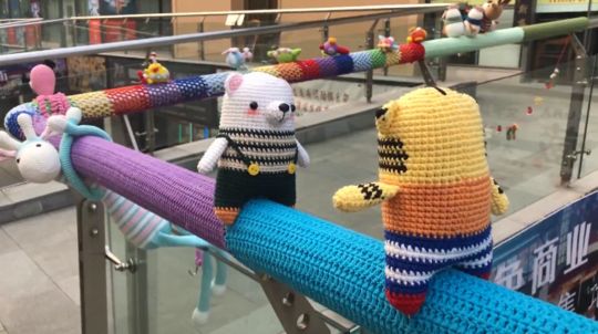 耗時4個月,覆蓋欄杆500米,大小玩偶500個——這是毛晚和她同伴們的戰果。