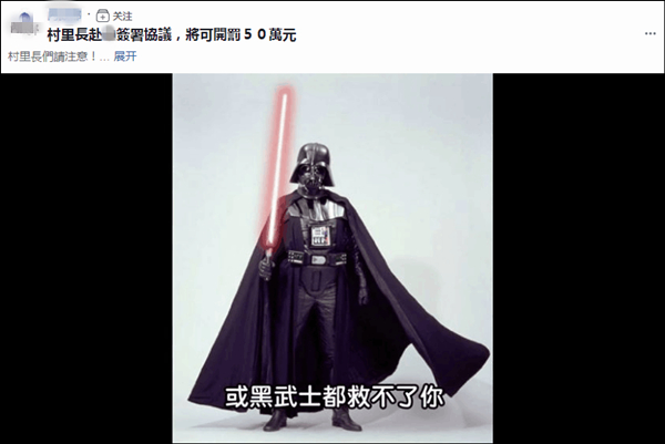 4月21日,台當局“內政部”在其臉書上傳一段視頻,竟警告全台村裏長,如果與大陸簽署交流協議,最高可被罰款50萬元新台幣(約合人民幣11萬元),“不管是尤達大師或黑武士都救不了你。”