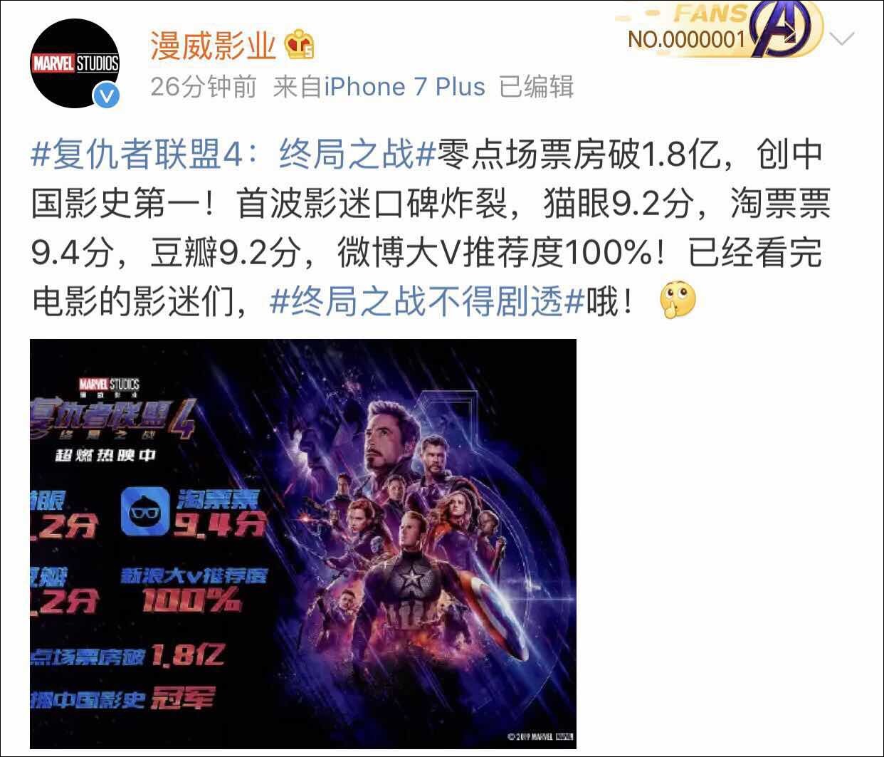 復聯4首映 躲過了朋友圈沒躲過微博熱搜...