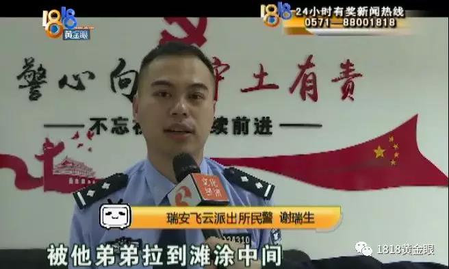 瑞安市公安局飛雲派出所民警謝瑞生:“到了現場,發現當時老人沒有在江裏,被他弟弟拉到灘塗中間,但是一直不肯上來,一直人躺在灘塗中間。”