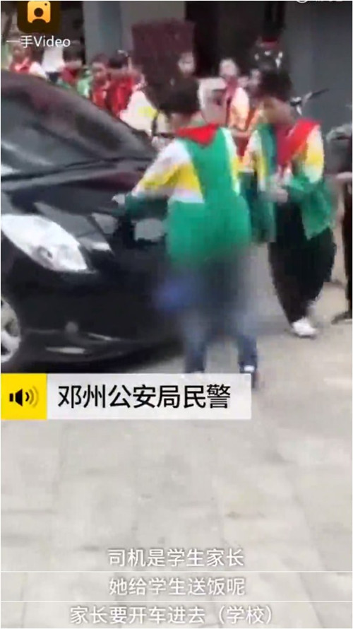 經過學校不顧阻攔 轎車頂着小學生強行通過