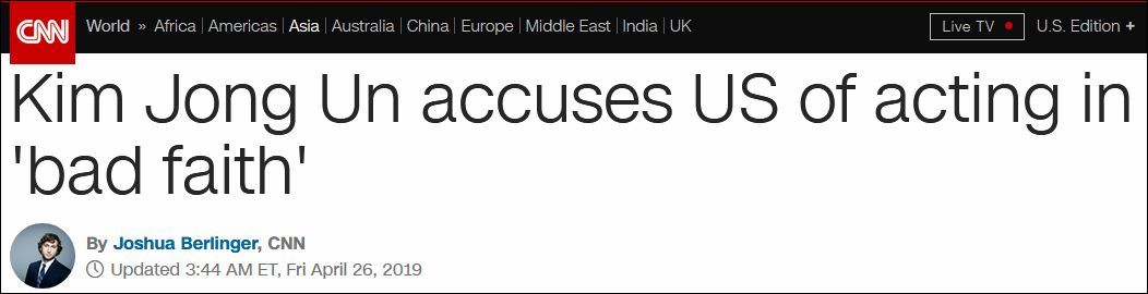 美國有線電視新聞網(CNN)認為,金正恩的這番話表示,美國“信用很差”(bad faith)。