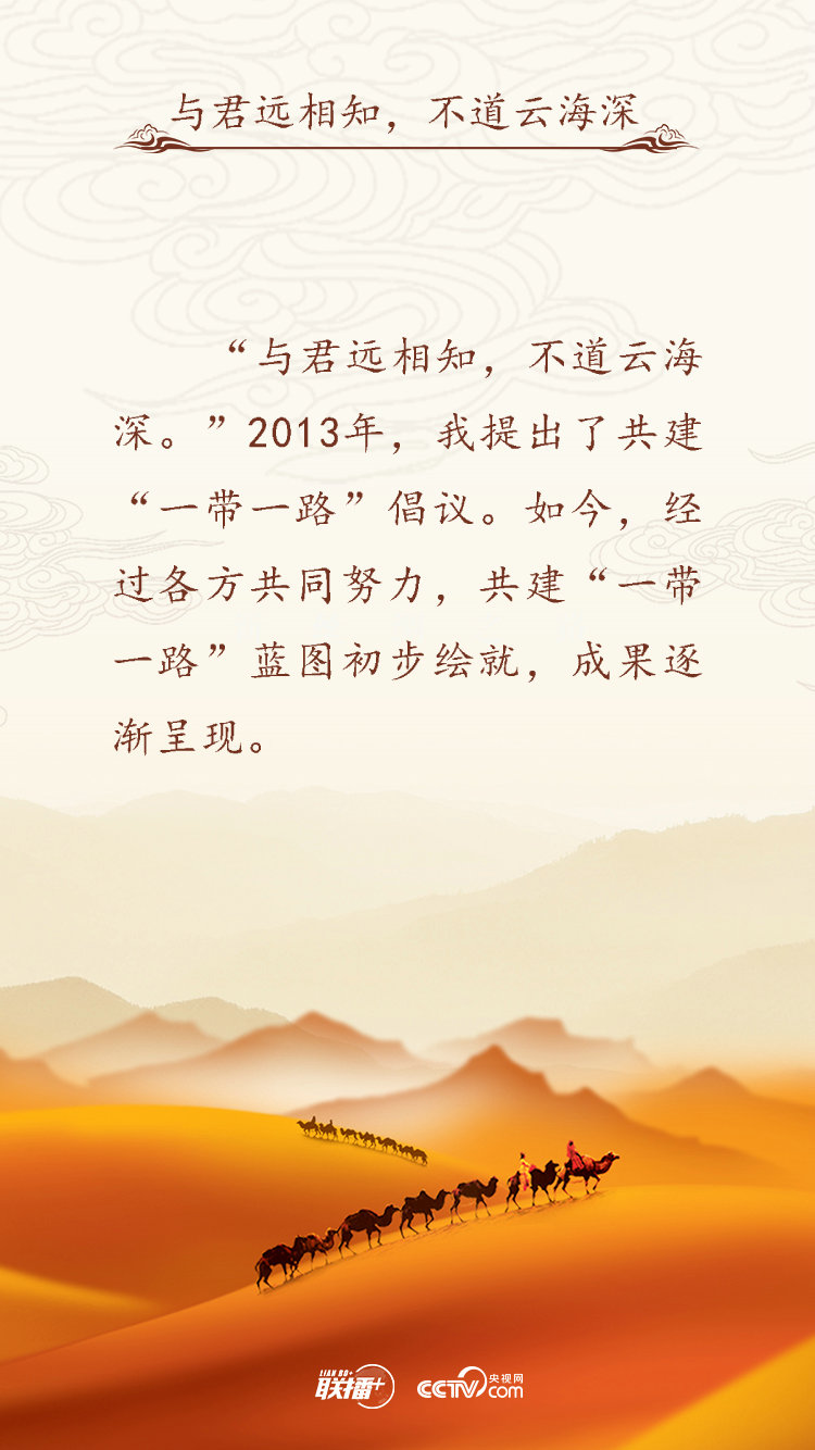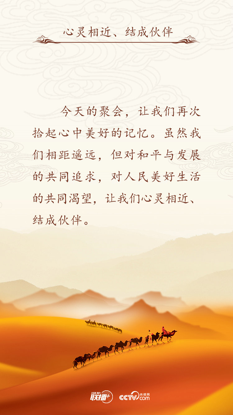 “與君遠相知,不道雲海深。”晚宴上,習近平致祝酒辭。短短的一千餘字情真意切,言近旨遠,既表達了對各國朋友的深厚情意,又對“一帶一路”合作願景作了真摯祝福。