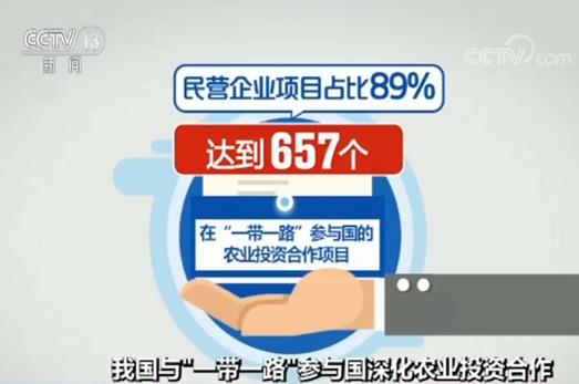 央視網4月27日消息, 農業農村部今天(27日)發佈,我國與“一帶一路”參與國的農業投資合作深入開展,目前我國在“一帶一路”參與國開展的農業投資合作項目超過650個,投資存量達到94.4億美元。