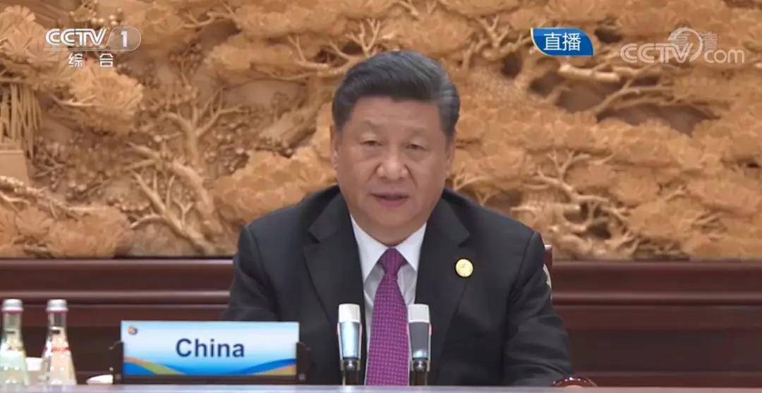 習近平説,2017年5月,我同在座許多領導人一起,在此舉行了首屆高峯論壇圓桌峯會,發表了聯合公報,確立了共建“一帶一路”的目標、原則、舉措,達成了多項具體成果。