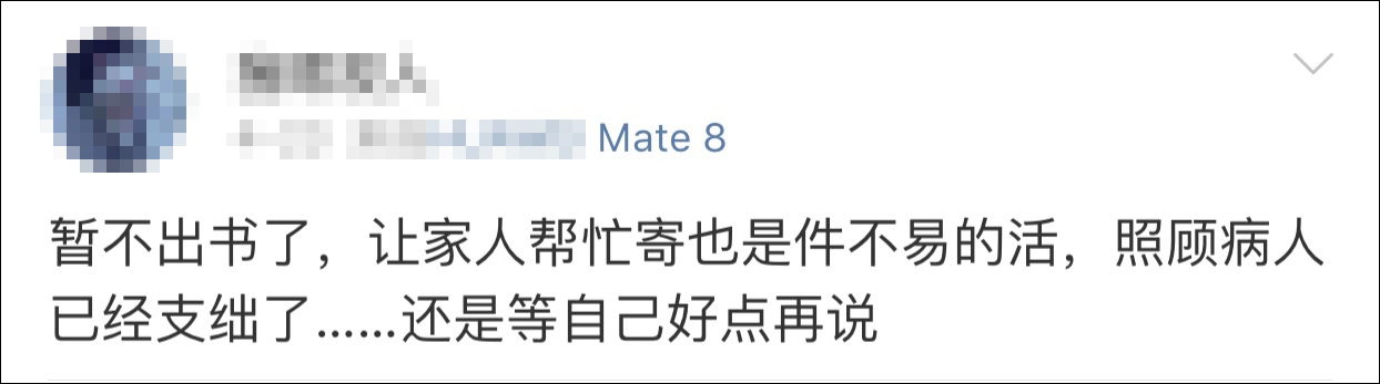 4月23日,他在微博寫下,“讓家人幫忙寄書是件不易的活,暫不出書了,等自己好點再説”,29日,微博更新停止。