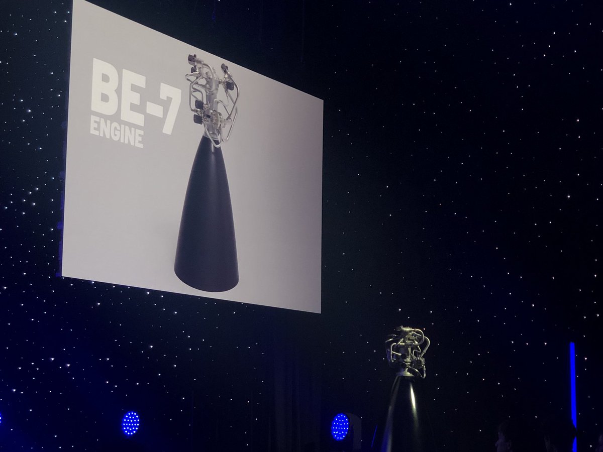 除了“藍月”以外,藍色起源還展示了全新的BE-7型火箭發動機,並稱這一發動機將會配合登月計劃。今年夏天,BE-7發動機就將首次進行測試。據貝索斯稱,它的推力可達到10000磅(4535公斤)。