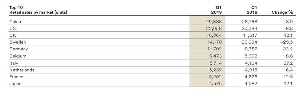 而根據2019年Q1的財報顯示,沃爾沃今年第一季度在華銷量29886輛,同比增長3.9%,但利潤則較2018年同期縮水近兩成,利潤率也從同期的6.4%下滑至4.6%的水平。