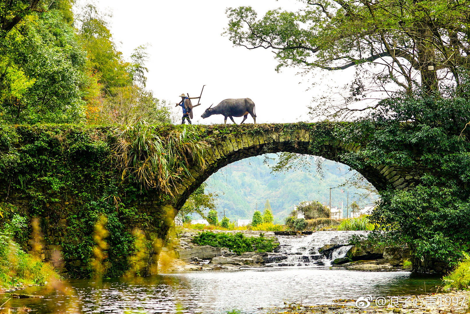 網友提到的,就是這個著名的“老農牽牛”圖,拍攝自江西婺源察關村,此村落2007年曾被評為“中國經典景觀村落”。
