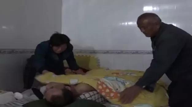 4月初,陳崗被父母帶回老家,因為陳崗生活不能自理,老兩口衣不解帶照顧兒子,每次喂兒子吃飯,只能用針管將營養液注射到兒子嘴裏,勉強維持兒子的生命。