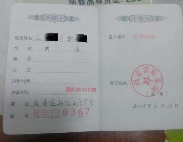 據新京報此前報道,王女士的父母早在2013年6月,就花費8萬元買好了墓地,墓地位於西安漢陵墓園的9號墓穴。其父母希望去世後合葬,“9”寓意長長久久,因為父母結婚已經六十多年了。墓地只有20年產權,20年後需要重新買。