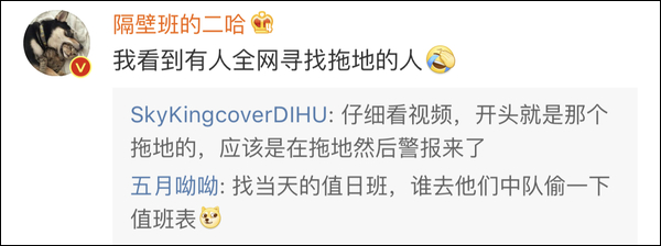 答案就在@中國消防 視頻文案中:“出警歸來時,不曉得大夥兒會不會找拖地的兄弟算賬~”