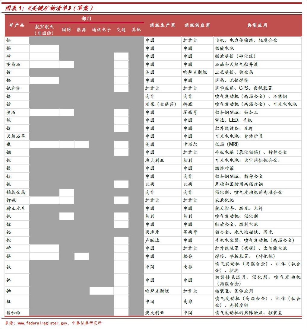 稀土、關鍵礦物等不在其列