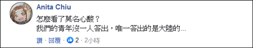 有台灣網民評論:“怎麼看了莫名心酸?我們的青年沒一人答出,唯一答出的是大陸的……”“台灣教改真行,改到大陸人比較認真讀書。”“馬先生,會發生這種問題,你也有責任!”