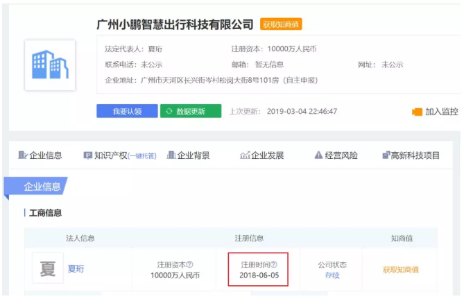 耐人尋味的是,“有鵬出行”的實體公司廣州小鵬智慧出行科技有限公司,早在 2018 年 6 月 5 日就註冊成立了。在那個時候,蔚來 ES8 只交付了區區 10 輛,而除蔚來外的絕大多數新造車公司都未開始交付。在如此早的節點,小鵬提前預判 2019 年的銷量走勢及對策顯得過於前瞻,有些不合邏輯。