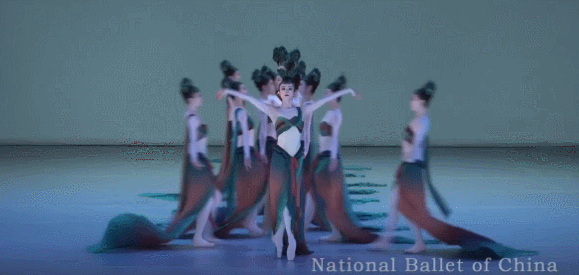 以敦煌壁畫形象衍化而來的芭蕾動作,優美流暢,獨具舞韻。就像敦煌的歷史由來一樣,東西方文化交融於此,藝術也因不同而煥發生機。