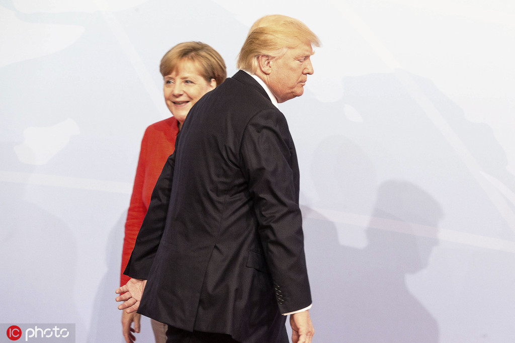 2017年7月7日,德國漢堡,默克爾歡迎特朗普/IC Photo