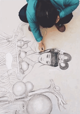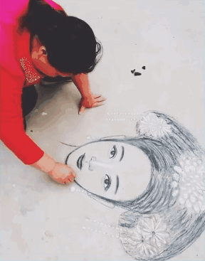 最初她常用鉛筆描描畫畫,但發現比較浪費。“在地上畫一個人物要用掉半隻鉛筆,為了省錢,我就用家裏燒剩的煤炭畫”。令她沒想到的是,這樣樸素的創作方式竟讓自己在網絡平台上收穫大批粉絲的關注和點贊。