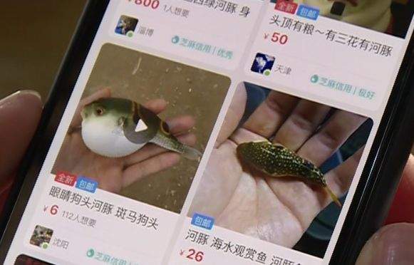 此外,我們還發現,在一些網絡平台,也有人公然出售活體河豚魚,有的是觀賞魚,有的則供人烹飪享用**,**甚至還有出售河豚魚的加工品。