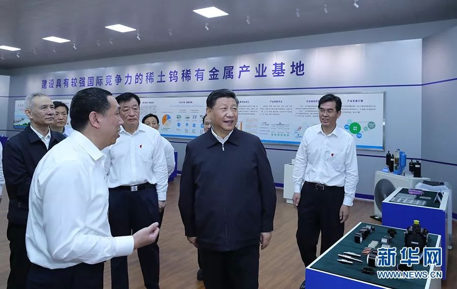 此行第一站,習近平就來到位於贛州市的江西金力永磁科技股份有限公司,瞭解考察企業生產經營和贛州市稀土產業發展情況。