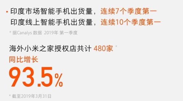 財報顯示,小米智能手機在印度已經連續7個季度保持出貨量第一,截止到2019年一季度,小米在印度智能手機出貨量已經比排名第二的廠商高30%。
