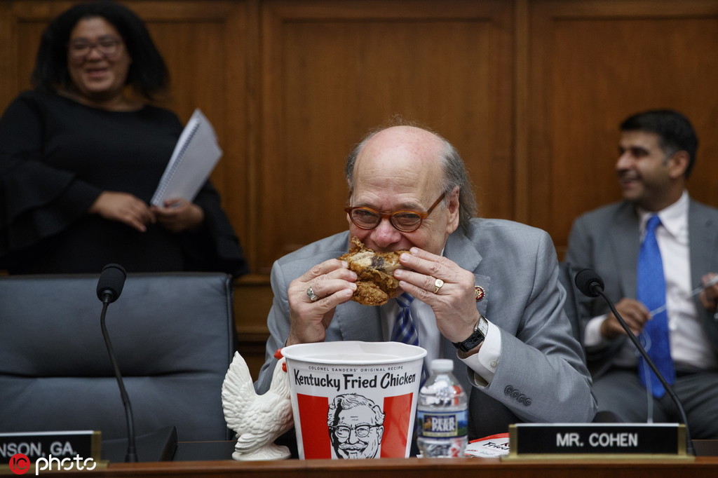 而史蒂夫·科恩則是特朗普的激烈反對者之一。他最近的“著名事蹟”發生在5月2日的眾議院司法委員會聽證會上:為了對拒絕出席的美國司法部長威廉·巴爾(也是反對國會調查特朗普的人之一)表達抗議,他在聽證會上吃起了肯德基。