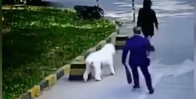 據悉,這是甘肅蘭州市公安局交警支隊城關大隊的民警從視頻監控上發現的一幕,這些碰瓷人士專挑不栓繩的狗狗下手,他們先是假裝在閒逛,發現目標後立刻戲精上身,直接撲過去,假裝被咬傷。
