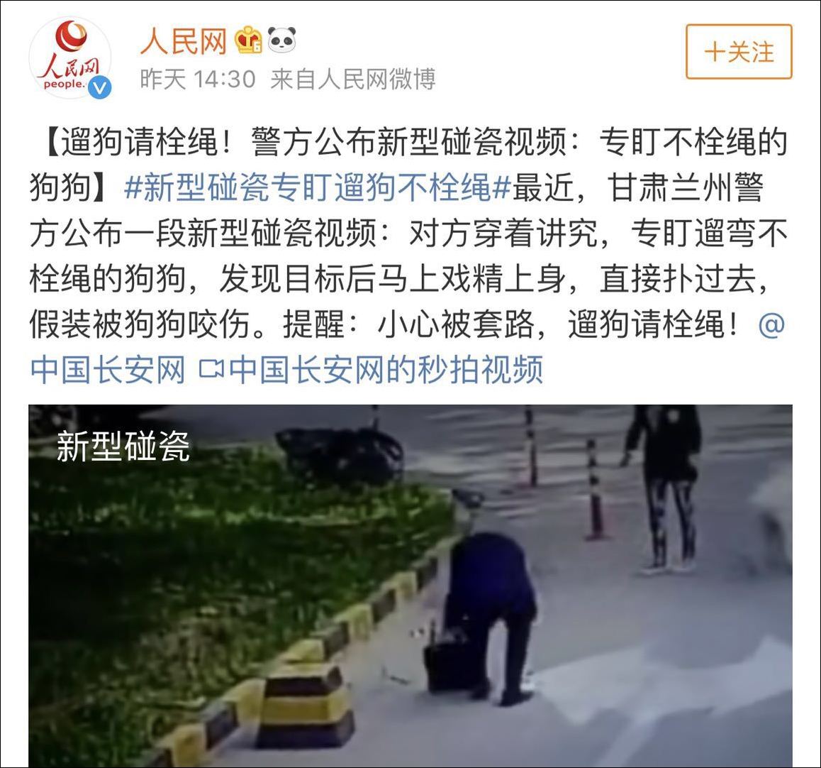 警方公佈新型碰瓷視頻:專盯不栓繩的狗