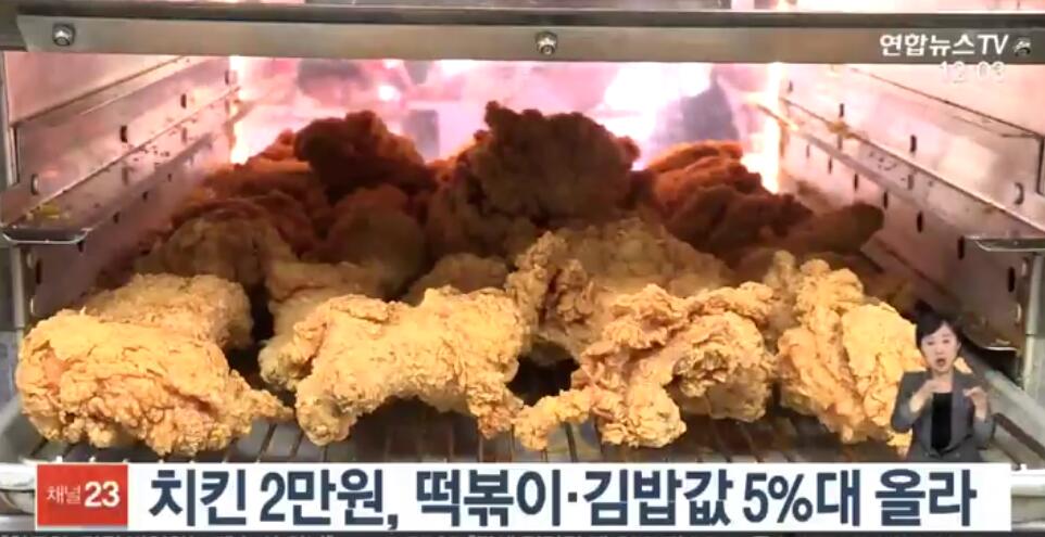 最終,炸雞以7.2%的漲幅,僅次於粥類(8.8%)排在第二位。紫菜包飯(5.9%)、炒年糕(5.0%)和方便麪(4.3%)緊隨其後,炒麻面(4.1%)、炸醬麪(4.0%)、大醬湯(4.0%)、冷麪(4%)等也都貴了不少。