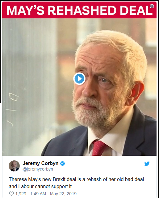 科爾賓稱工黨不會支持這一協議 圖自社交網站