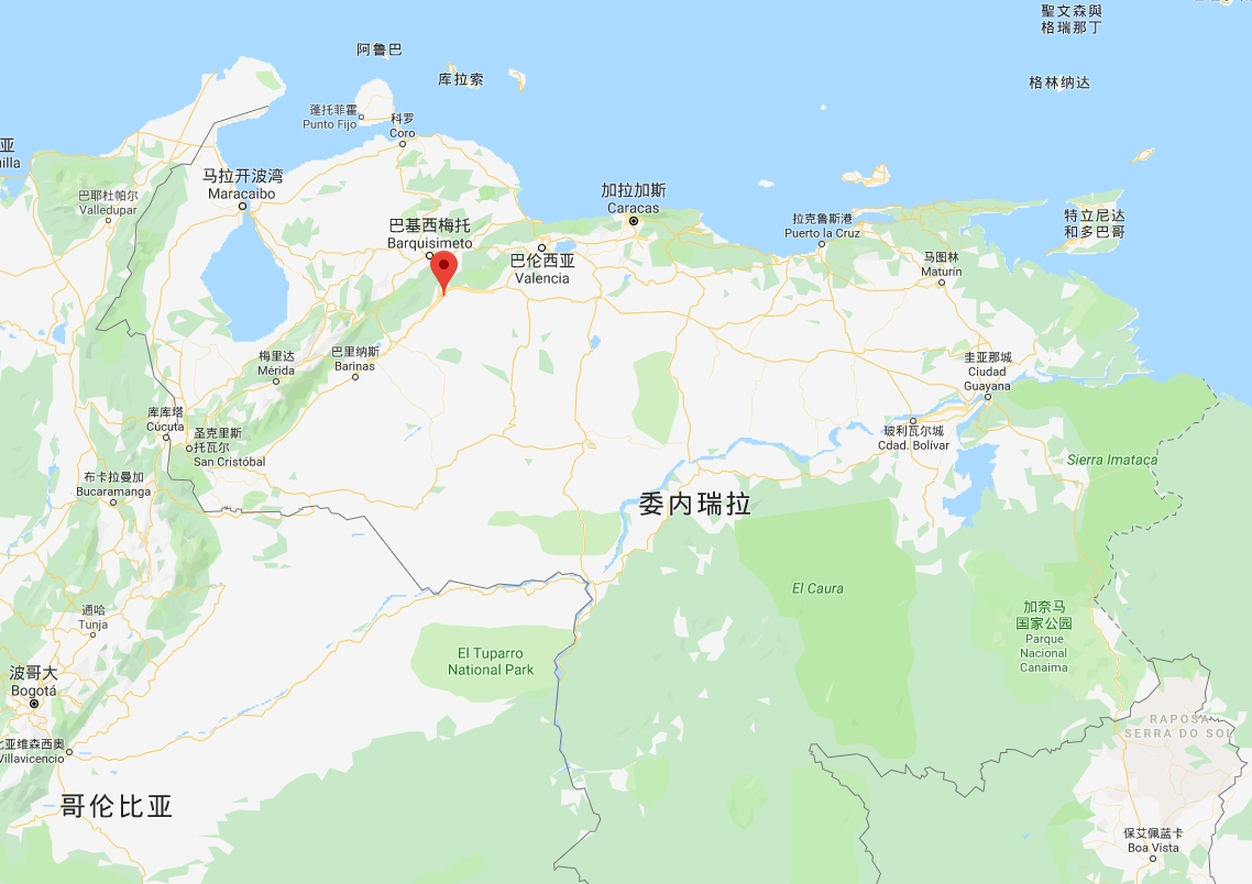 事發地阿卡里瓜位於委內瑞拉西北部,距離加拉加斯約350公里 圖自:谷歌地圖