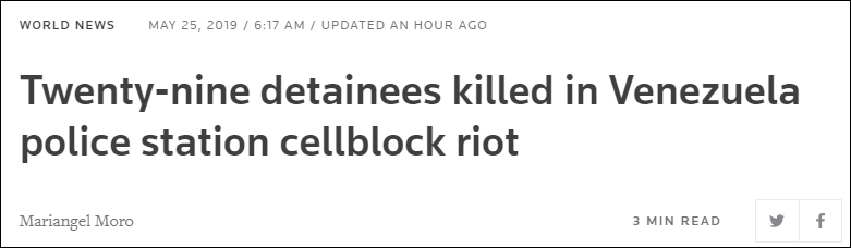 當地時間週五(24日),委內瑞拉西北部一處收押355人的監獄發生暴動。持有武器的囚犯與獄警發生衝突,事件導致29名囚犯死亡。