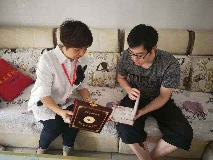 湖州市紅十字會將中國人體器官捐獻榮譽證書交給小毛豆的爸爸。