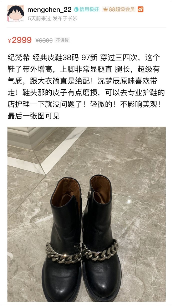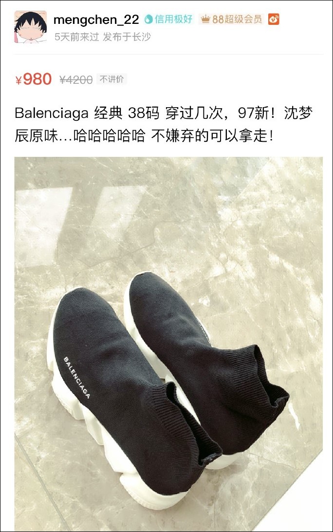 沈夢辰二手鞋標“沈夢辰原味”引爭議 網友:有譁眾取寵之嫌