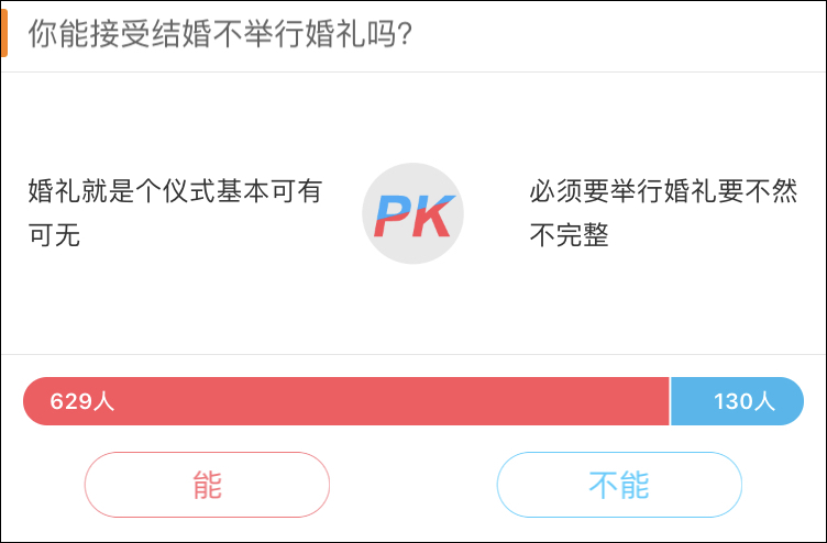 在微博發起的投票中,超過80%的人選擇了“婚禮就是個儀式基本可有可無”。