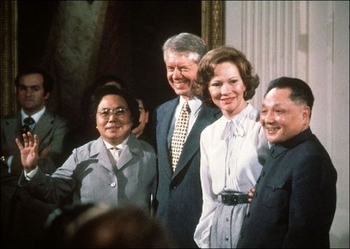 1979年1月31日,美國華盛頓,鄧小平和夫人卓琳與時任美國總統吉米·卡特和夫人羅莎琳·卡特合影