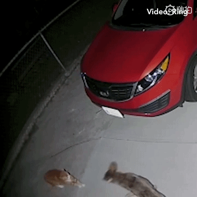 貓狼大戰時,運動探測器的警報聲驚醒了熟睡的海耶斯和她的丈夫埃德。“我知道有事情發生了,我抓起視訊電話後,看到了兩隻土狼和一隻貓”,海耶斯瞬間嚇壞了,她立刻扔下電話,起牀朝前門跑去。