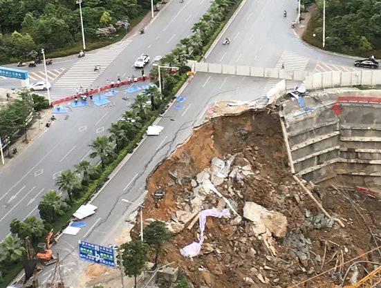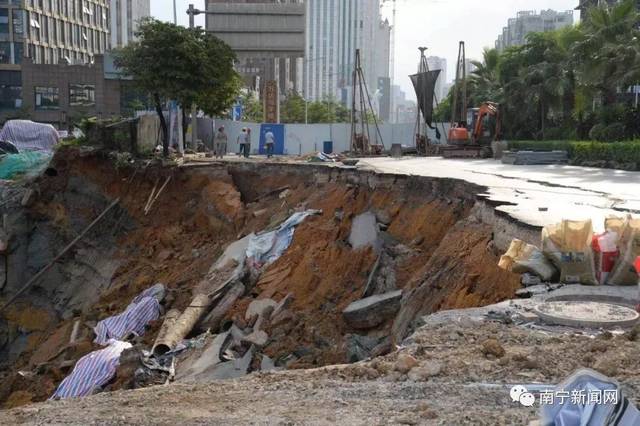 6月8日,廣西南寧一長段原本已經開裂的公路路面發生大面積塌陷,與其相鄰的是一處大型建築工地。該路段已禁止車輛和行人通行,無人傷亡。