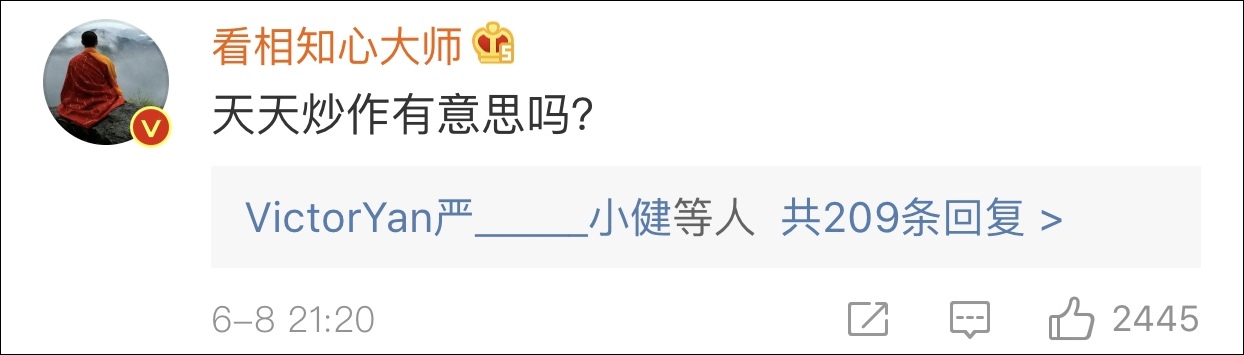 幾分鐘後,他又發佈了另外一條帖子怒斥:靠爹的還敢罵靠自己的,80後還敢罵90後,搞個直播就倒閉的敢罵還在創業的,誰給你的勇氣?