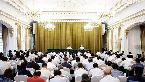 “不忘初心、牢記使命”主題教育中央第六指導組組長宋育英、副組長金德水出席,市委副書記尹弘主持。