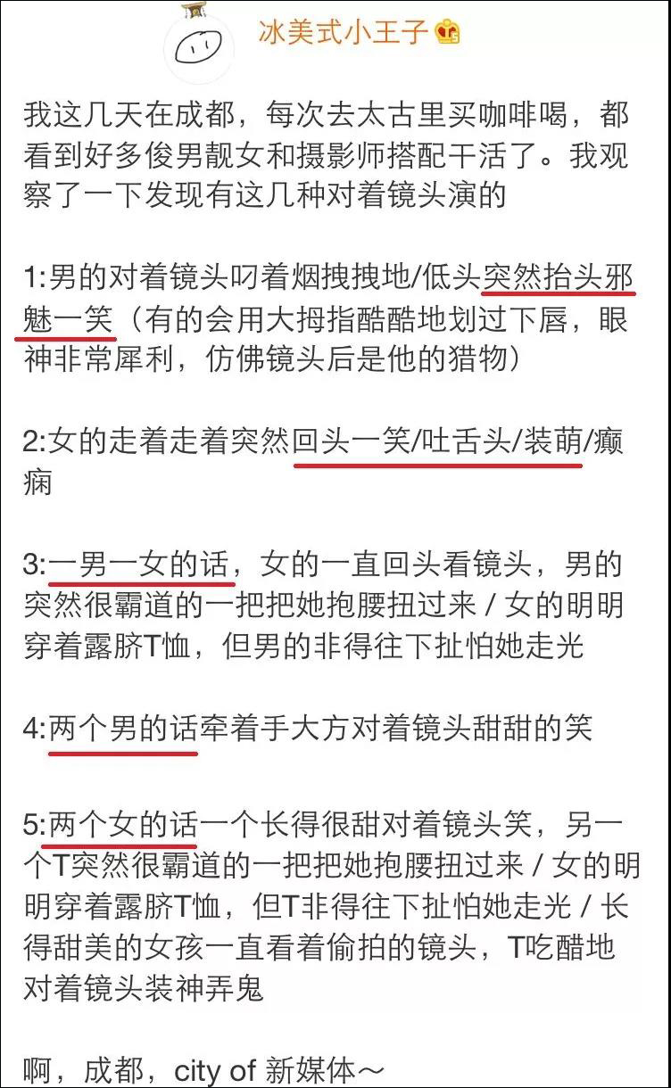 當然除了以上的行為之外,最近大城市的街拍畫風,也越來越奇特了;你以為街拍就是簡簡單單的拍照?那不可能,他們都是帶着劇本來的↓