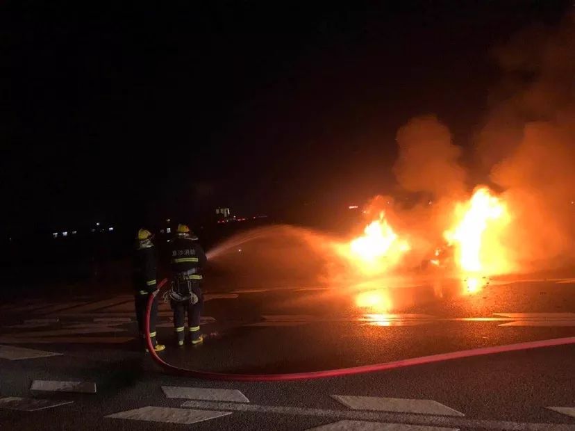 廣東消防部門6月10日通報,阜沙消防中隊隊員到場時,發現一輛廣西號牌的小車停靠在應急車道上,火勢處於猛烈階段。消防隊員立即出動水槍撲救,5分鐘後將明火撲滅,隨後繼續射水降温,防止復燃。