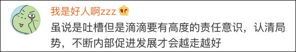 不過也有網友表示,滴滴放出內部吐槽會視頻敢於自黑是件好事,但更重要的還是應該擔起企業責任,面對用户的問題保持嚴肅、誠懇態度,積極改進多加溝通,才是穩定發展的保證。