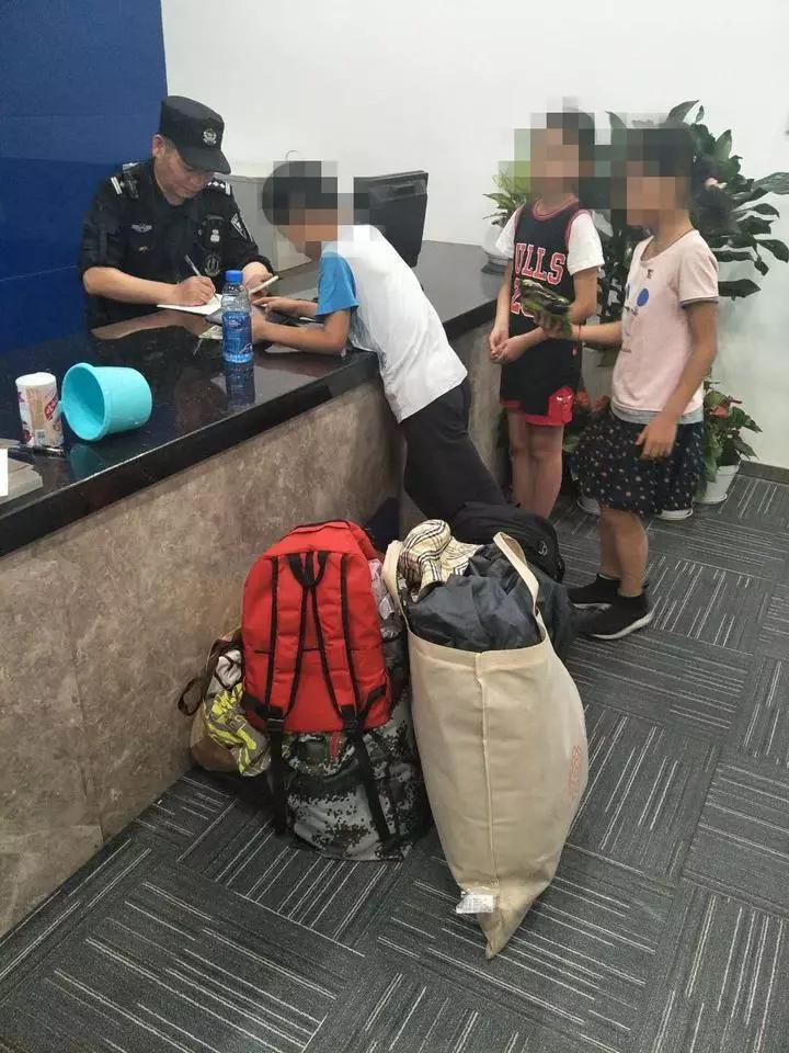 東站樞紐派出所接到報警後,民警戴桂生立即組織人員前往現場。民警在火車東站裏裏外外細心尋找,很快就在火車東站西廣場上看到了這3個扛着大包行李遊蕩的孩子。