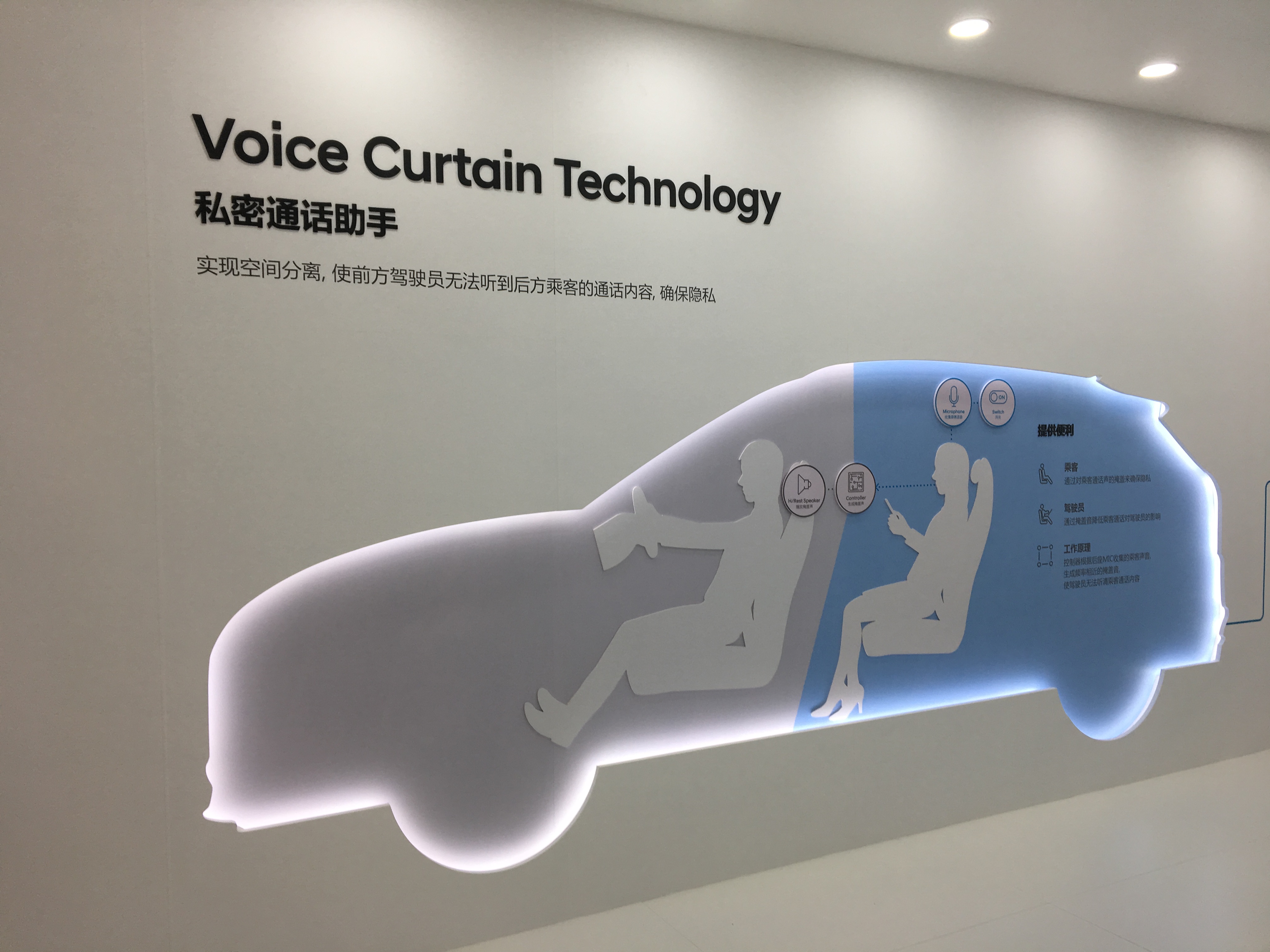 在現代展台,氫燃料電池汽車NEXO已於去年與中國觀眾見面,因此在新能源領域顯得有些索然無味。而發佈的重點反而是一種名為,這項科技能夠通過座椅頭枕發出的干擾聲,讓駕駛員無法聽到後排聲音,保護後排乘客隱私。