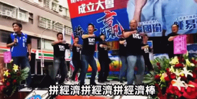 當時國民黨有多位青年議員參選人組成了一個後援團,名為“青年戰隊”,帶領着20多個年輕小夥在造勢現場跳了一段“毛利戰舞”,試圖搶佔青年羣體選票。