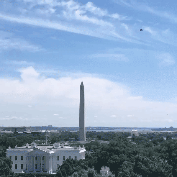 當天下午1:45左右,一架海軍陸戰隊F35B型戰機以300米左右的高度從白宮上空飛過,在華盛頓紀念碑附近做“Z”字飛行,還一度調整為垂直起降模式進行盤旋。