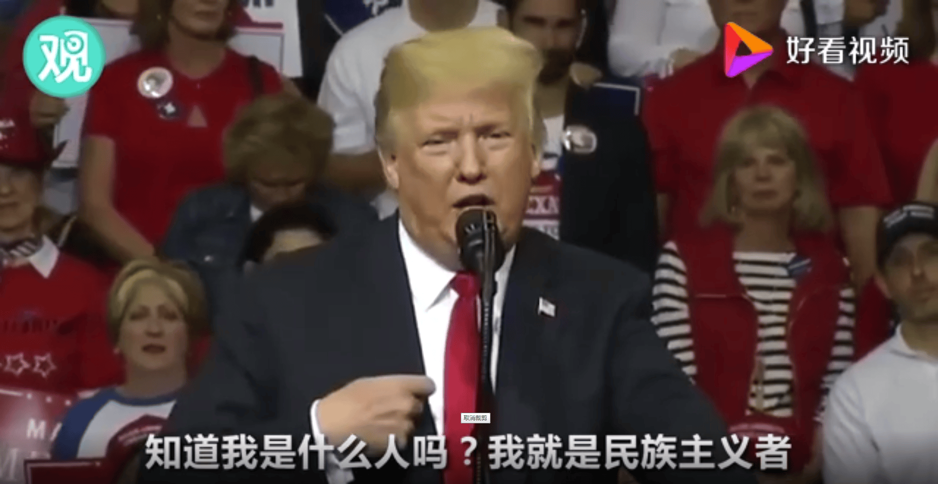 2018年10月22日,特朗普在中期選舉集會中公開宣稱自己是民族主義者(Nationalist) 圖片來源:觀察者網