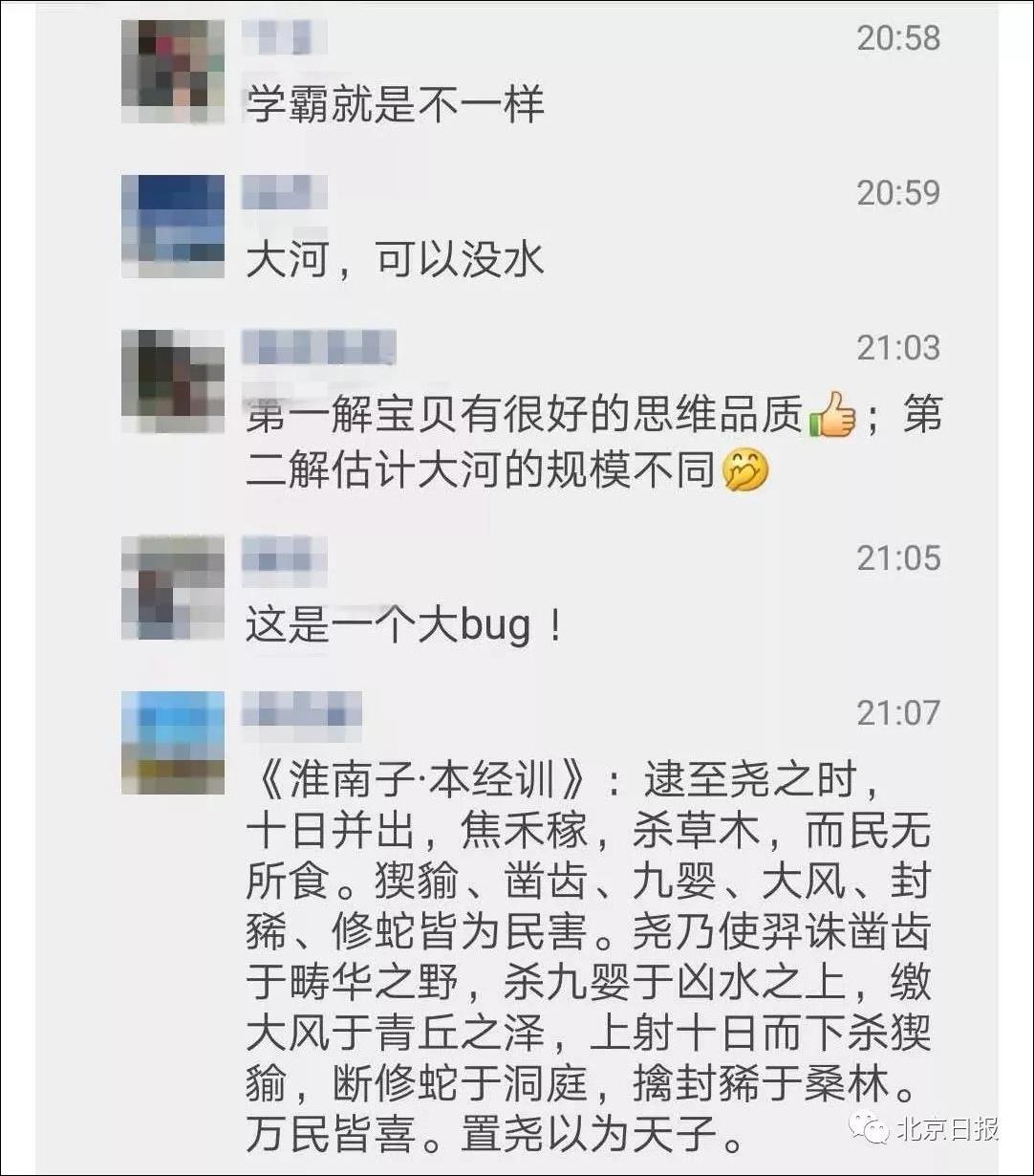 面對兒子提出的這個問題,難以作答的媽媽何女士只得將其曬到了朋友圈,求高手解答。沒想到朋友圈一下子炸開了鍋。
