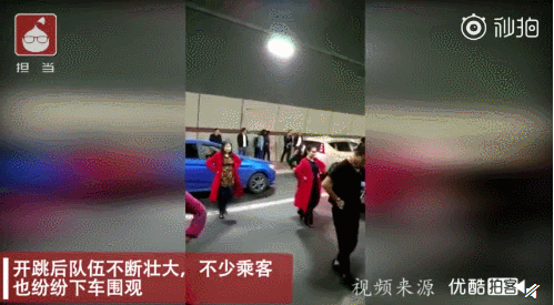 從視頻中可以看到,乘客們跳得很起勁,不時舉起手來抬起腳……而他們起舞的位置,正是服務區的公共停車區域。